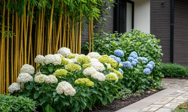Traumhaftes Zusammenspiel: Bambus und Hortensien im Garten