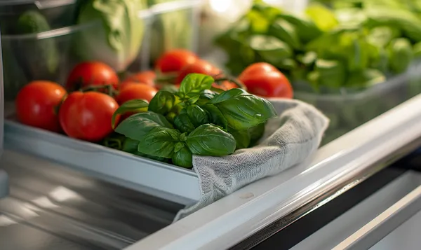 Die richtige Aufbewahrung im Kühlschrank schützt Basilikum vor Kälteschäden im Gemüsefach