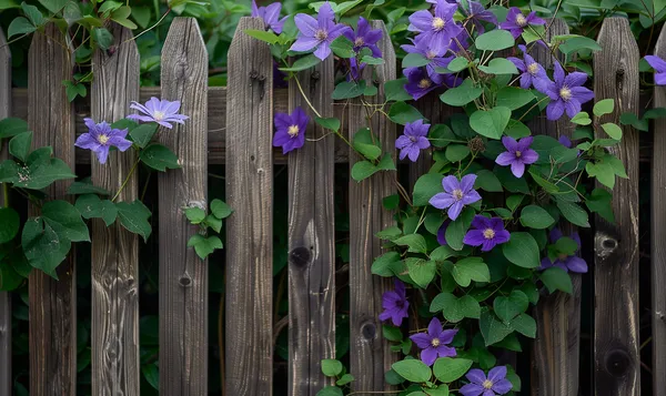 Clematis am Zaun schafft eine lebendige, harmonische Gartenatmosphäre und Sichtschutz