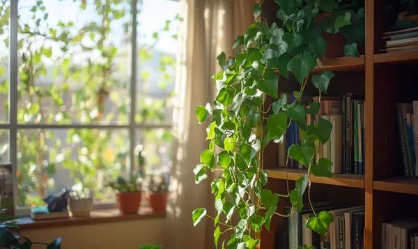 Ein heller bis halbschattiger Standort fördert das gesunde Wachstum von Efeu im Zimmer