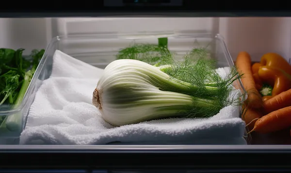 - Kühlschrank: Lagern Sie Fenchel im Gemüsefach des Kühlschranks und wickeln Sie ihn idealerweise in ein feuchtes Küchentuch oder in Frischhaltefolie. So bleibt er bis zu zwei Wochen haltbar.