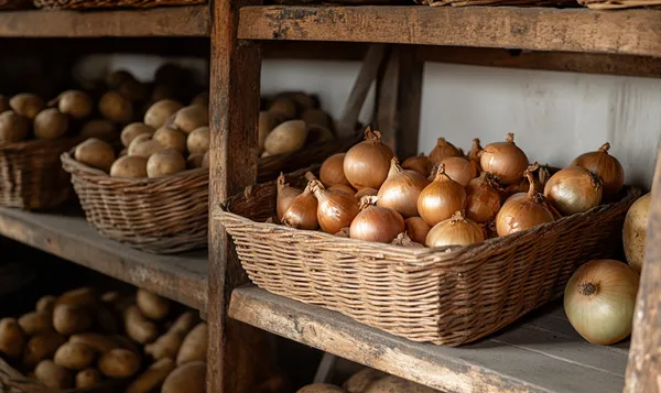 Ein trockener, kühler Kellerraum ist ideal, ebenso eine unbeheizte Kammer. Zwiebeln sollten stets getrennt von Kartoffeln gelagert werden, um Feuchtigkeitsaufnahme zu verhindern.