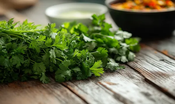 Koriander hingegen hat ein kräftiges, charakteristisches Aroma. Sein Geschmack ist würzig mit deutlichen Zitrusnoten und gelegentlich einer moschusartigen Nuance. Ein markanter Unterschied ist, dass einige Menschen den Geschmack von Koriander als seifig empfinden, was auf genetische Unterschiede im Geschmacksempfinden zurückzuführen ist. Koriander verleiht asiatischen, indischen und orientalischen Gerichten eine frische, unverwechselbare Würze und wird häufig in Currys, Chutneys und Salsas eingesetzt.
