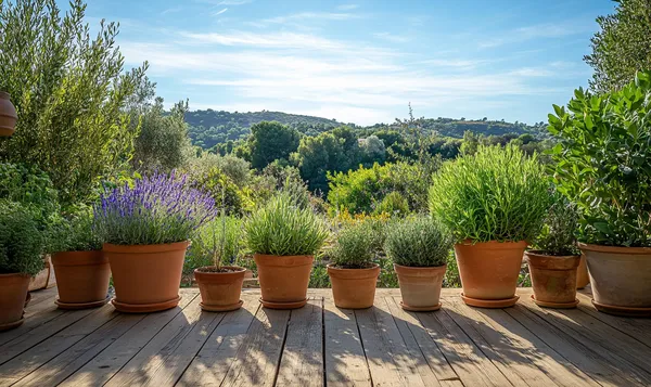 Durch die richtige Auswahl der Pflanzgefäße schaffen Sie optimale Bedingungen für Ihren Kräutergarten auf der Terrasse.