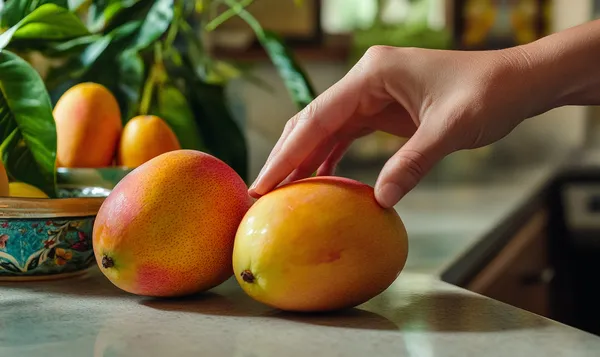 - Drucktest: Die Mango sollte bei leichtem Druck nachgeben.