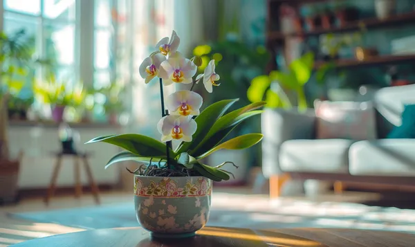 - Licht: Orchideen benötigen viel helles, indirektes Licht, idealerweise etwa acht Stunden täglich. Vermeiden Sie direkte Sonneneinstrahlung, insbesondere zur Mittagszeit.