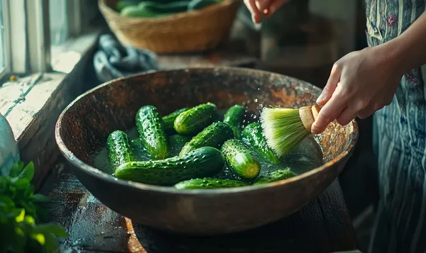 - Gurken gründlich waschen: Nutzen Sie hierfür eine weiche Bürste, um sämtliche Verunreinigungen und Stacheln zu entfernen.