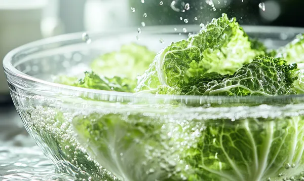 Das Salzwasserbad entfernt effektiv Schädlinge vom Wirsing für hygienische Sauberkeit